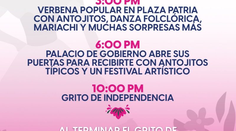 🇲🇽 3:00 pm – Verbena popular en Plaza Patria con antojitos, danza folclórica, mariachi y muchas sorpresas más.