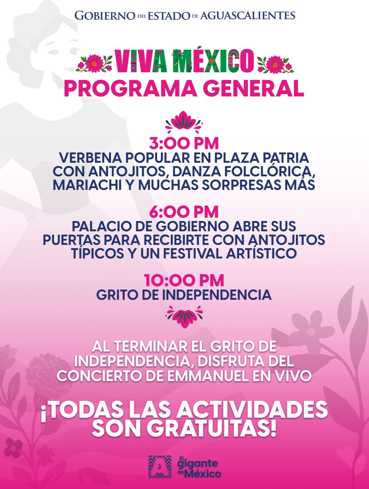 🇲🇽PROGRAMA GENERAL PARA FESTEJAR LAS FIESTAS PATRIAS EN AGUASCALIENTES