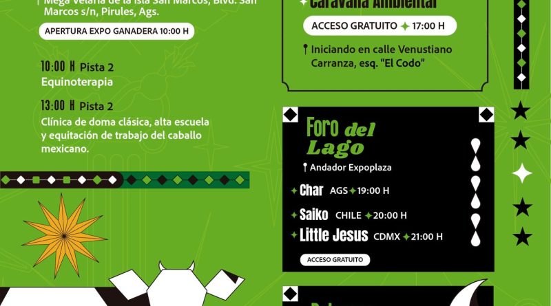 EspectáculosLOCALNacionalNOTAS DESTACADAS 🎡🐓#FNSM| Te compartimos las actividades de la Feria Nacional de San Marcos para este 20 de abril. 19 de abril de 2026 María Martínez Share on Facebook Share Share Share on Twitter Share Share Share on Pinterest Share Share Share on Linkedin Share Share Share on Digg Share Share 0 Aguascalientes #FNSM