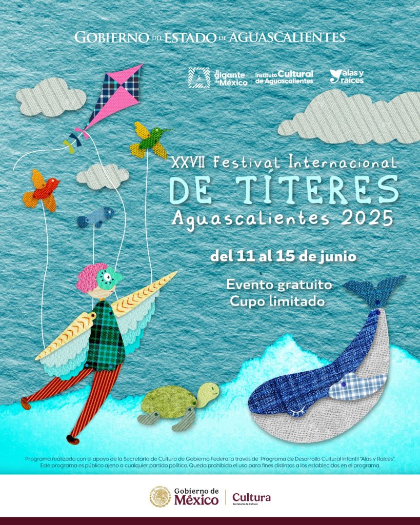 El Gobierno del Estado de Aguascalientes, a través del Instituto Cultural, invita a las familias a disfrutar del XXVII Festival Internacional de Títeres 2025, que se realizará del 11 al 15 de junio con la participación de compañías locales, nacionales e internacionales. ¡No te puedes perder esta maravillosa experiencia!