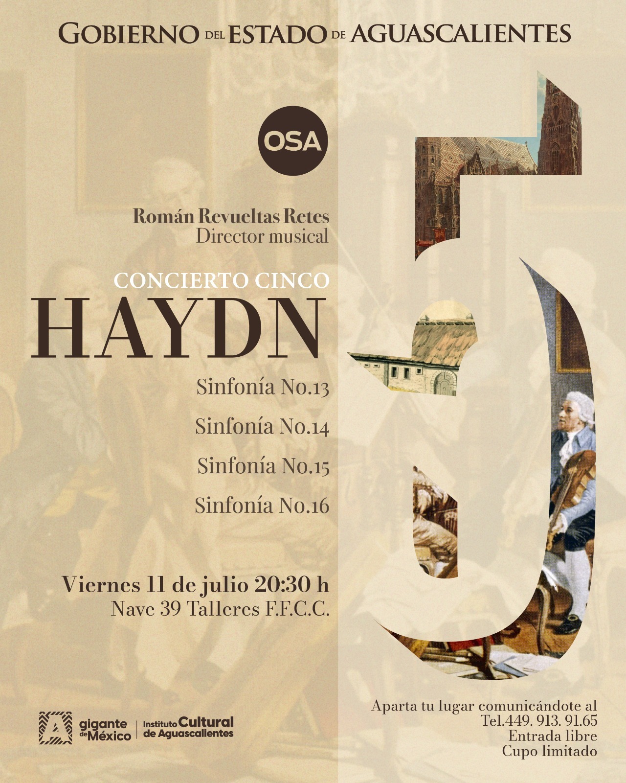 Este viernes 11 de julio a las 20:30 h, acompáñanos en la Nave 39 del Complejo Ferrocarrilero Tres Centurias para disfrutar de un concierto espectacular con obras del gran compositor Joseph Haydn.