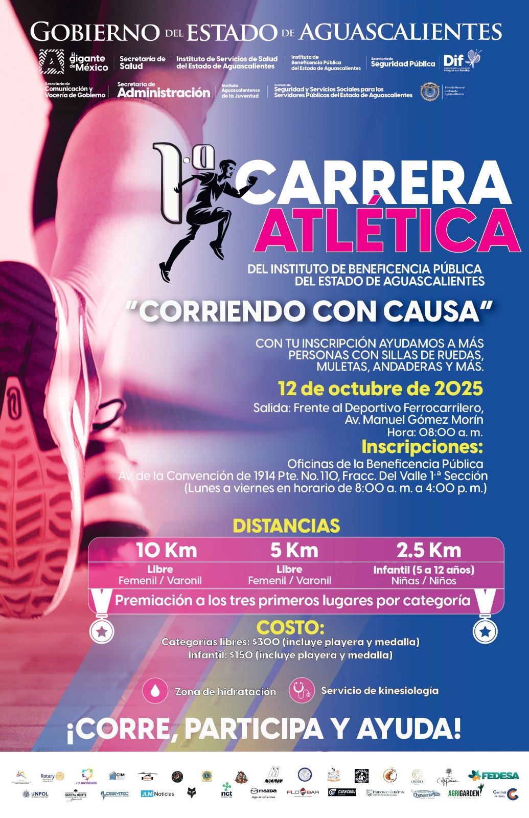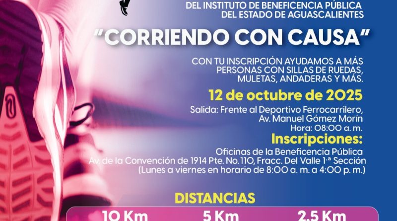 El Instituto de Beneficencia Pública de Aguascalientes te invita a la 1.ª Carrera Atlética “Corriendo con Causa”.