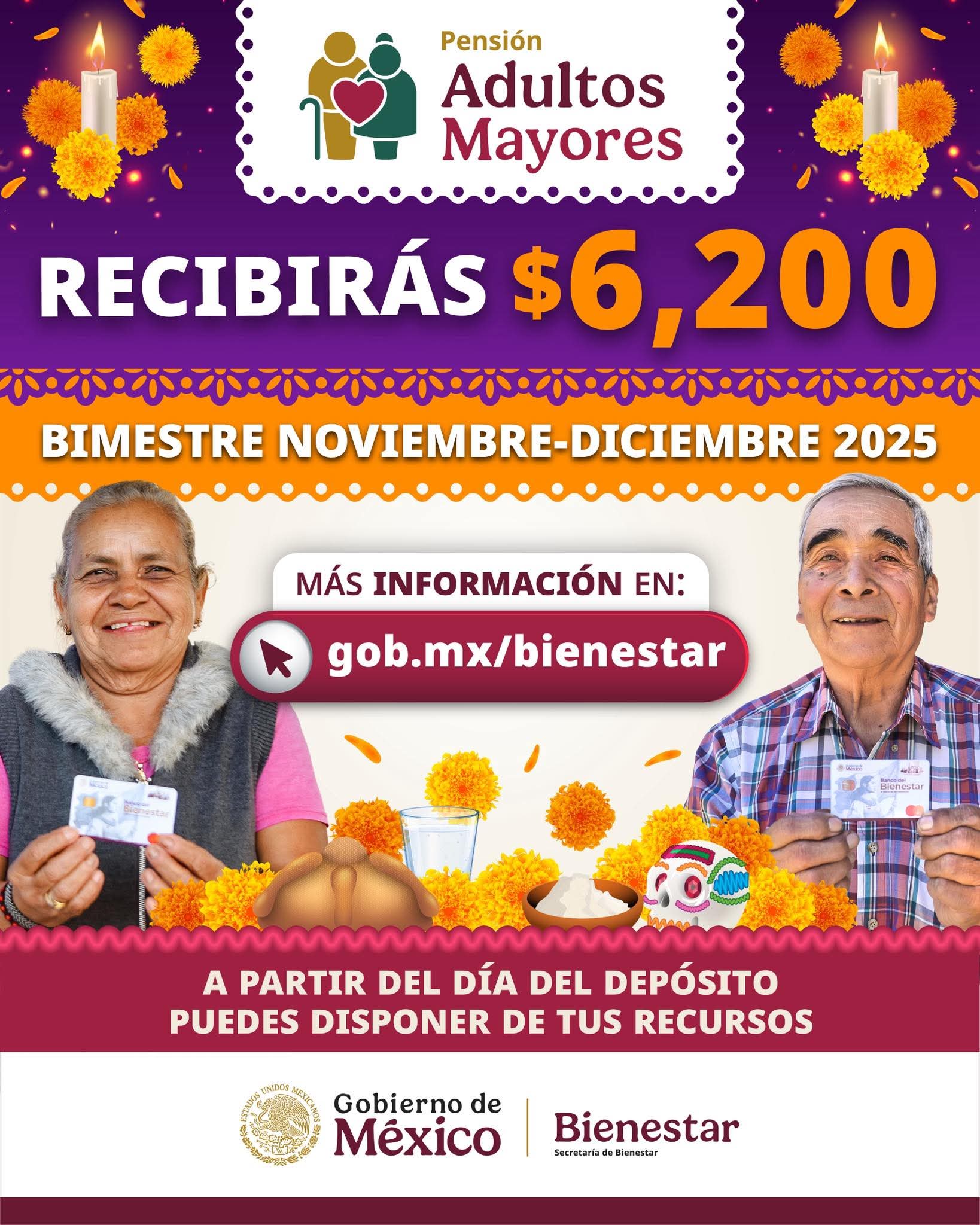 Ya inició la dispersión de la Pensión para el Bienestar de las Personas Adultas Mayores, correspondiente al bimestre noviembre-diciembre. 🗓️💳