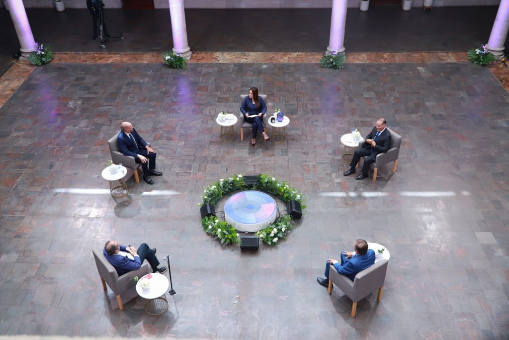 El conversatorio, moderado por Alberto Romero, director general de Radio y Televisión de Aguascalientes (RyTA), incluyó la presentación de los principales logros de la actual administración en materia de seguridad, economía, salud, educación, obra pública, vivienda y desarrollo social.