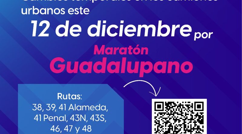 Este viernes 12 de diciembre, debido a la realización del Maratón Guadalupano, varias rutas de camiones urbanos modificarán su recorrido entre las 10:30 y las 18:00 horas.