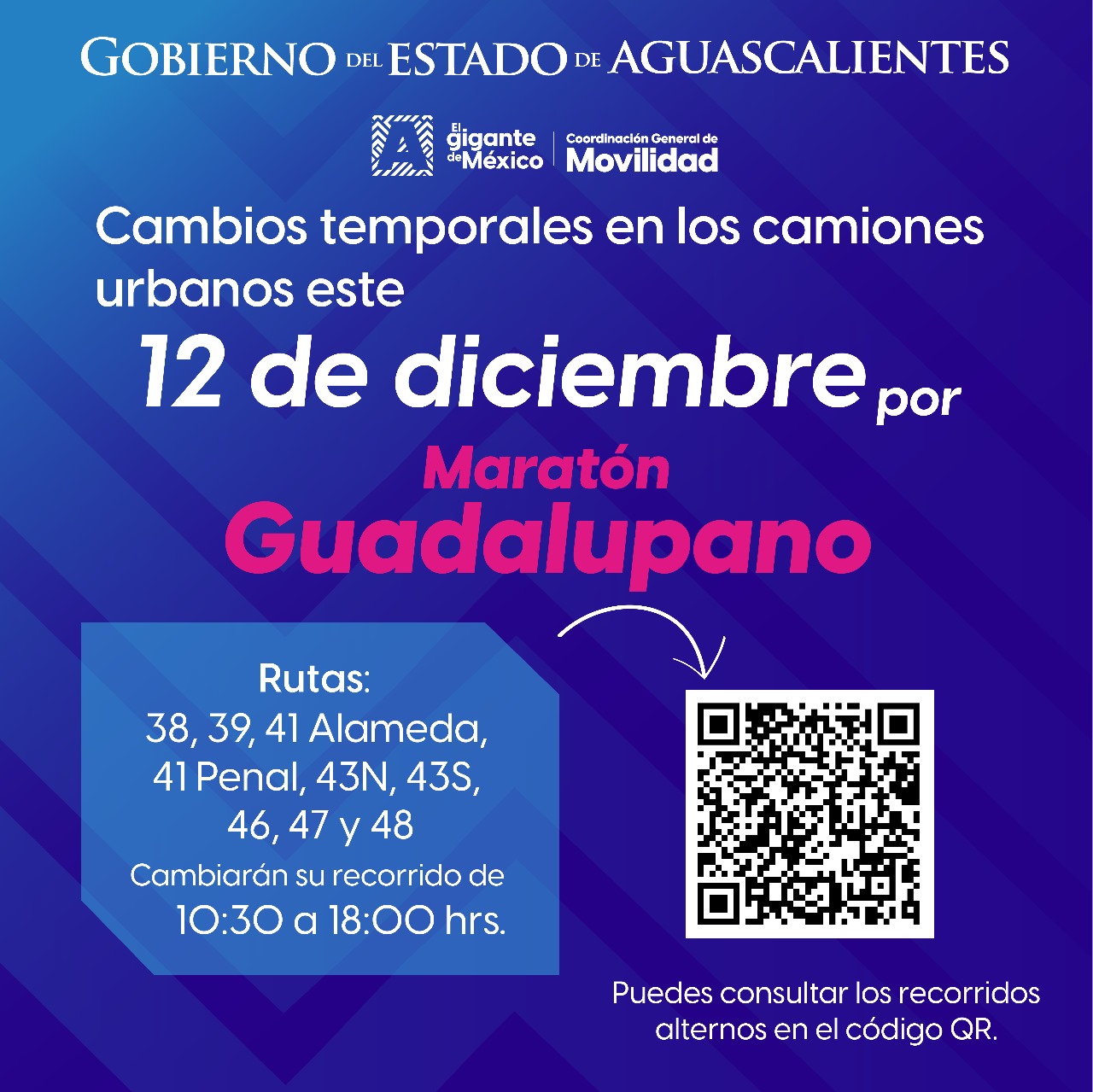 🚍 ATENCIÓN, USUARIOS DEL TRANSPORTE PÚBLICOHabrá cambios temporales en varias rutas por el Maratón Guadalupano