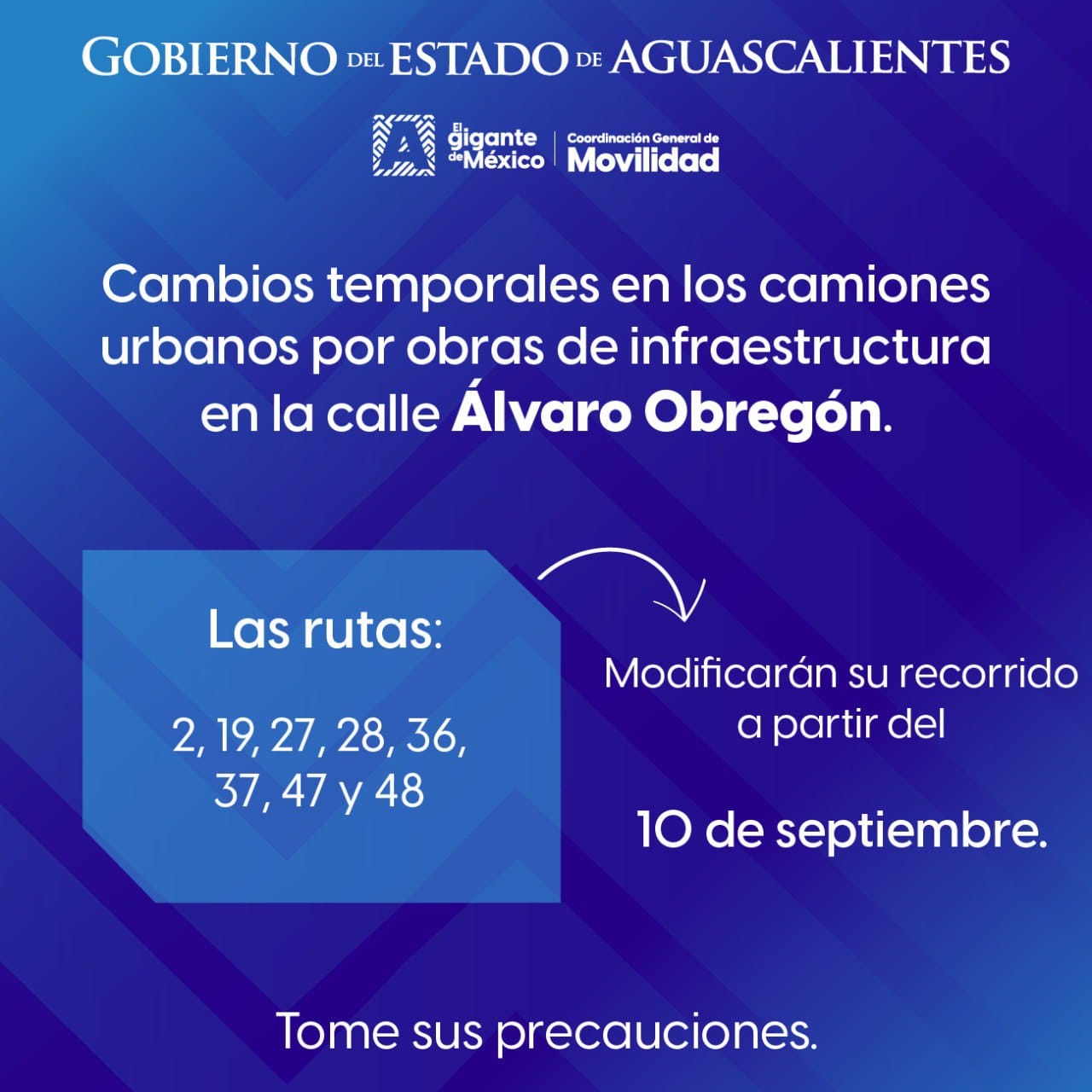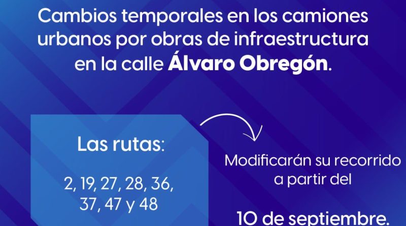 A partir de este miércoles habrá modificaciones temporales en algunas rutas de camiones urbanos debido al cierre parcial de la calle Álvaro Obregón.