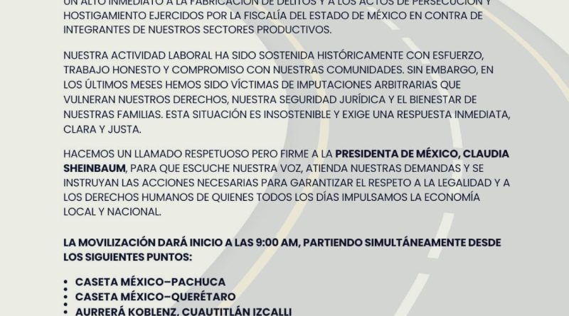 Para este miércoles, transportistas y comerciantes de distintos puntos del país han convocado una mega marcha que bloqueará accesos principales a la #CDMX.