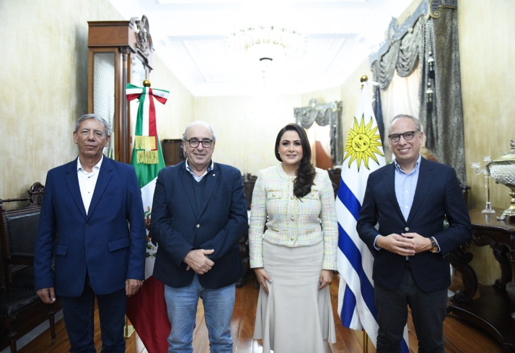 La gobernadora de Aguascalientes, Tere Jiménez, sostuvo un encuentro con el ministro de Agricultura, Ganadería y Pesca de Uruguay, Luis Alfredo Fratti Silveira, y con el embajador de la República de Uruguay en México, Santiago Wins Arnabal, con quienes dialogó sobre el modelo agropecuario que impulsa su administración y la posibilidad de desarrollar proyectos conjuntos en el sector.