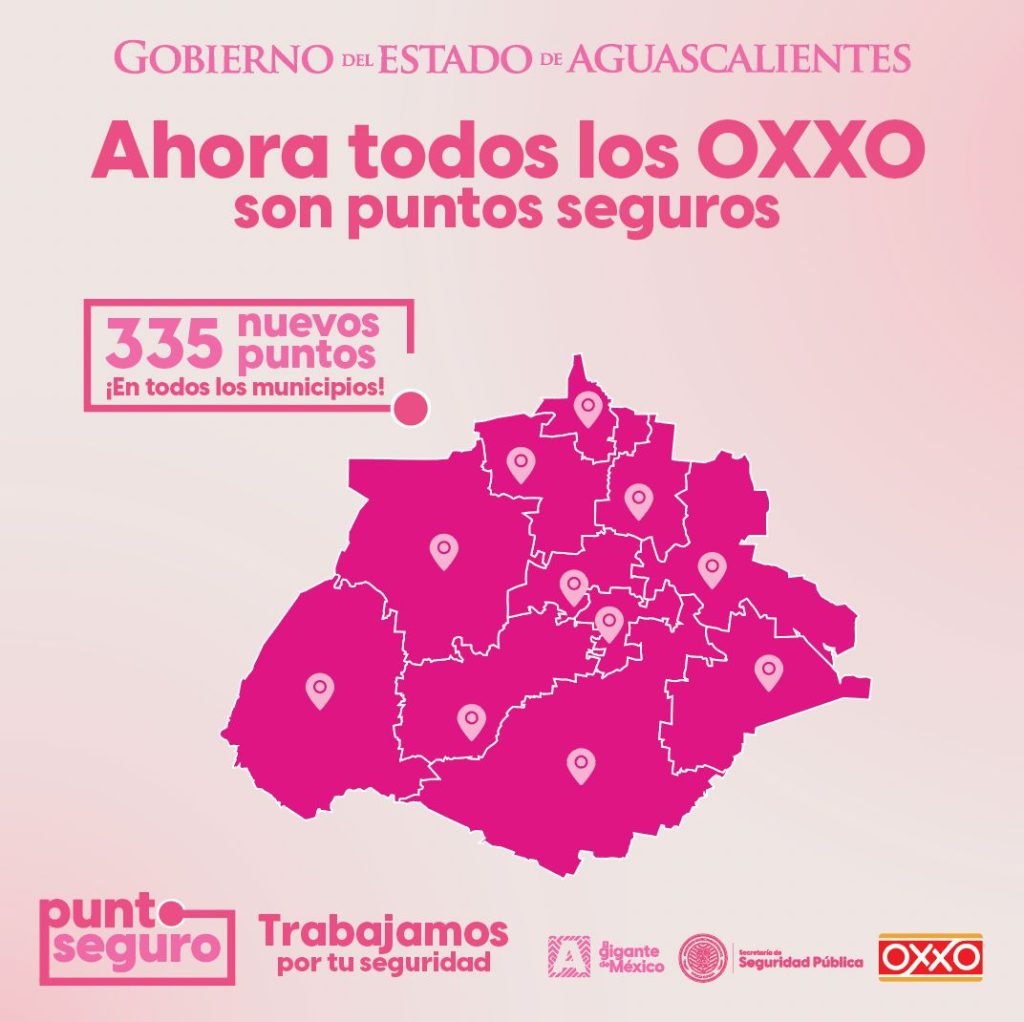 En Aguascalientes ya están en operación 335 nuevos Puntos Seguros dentro de tiendas OXXO en todo el estado, donde cualquier mujer, niña o niño que se sienta en riesgo puede pedir ayuda de manera inmediata.
