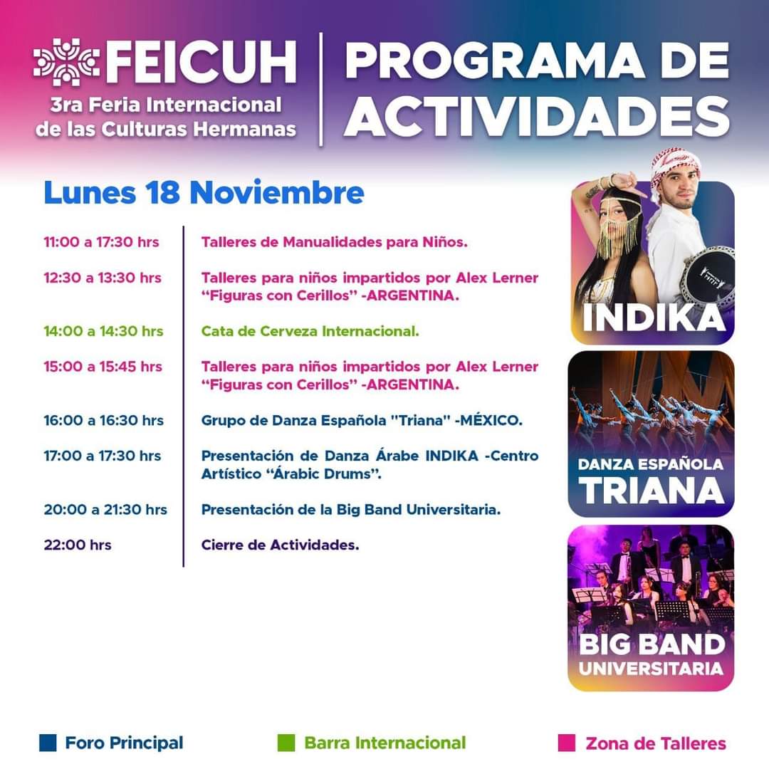ACTIVIDADES DE HOY LUNES 18 DE NOVIEMBRE EN LA FERIA INTERNACIONAL DE LAS CULTURAS HERMANAS