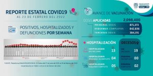 Además, dio a conocer que ya se han aplicado en la entidad 2 millones 98 mil 400 dosis de vacuna contra coronavirus, de las cuales 842 mil 836 corresponden a esquemas completos y 384 mil 191 dosis de refuerzo para toda la población.