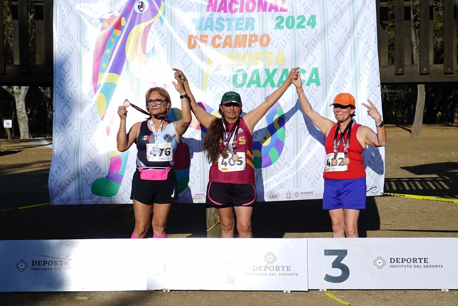 El Gobierno del Estado informa que la delegación de Aguascalientes integrada por 8 atletas máster regresó del Campeonato Nacional de Campo Traviesa que se llevó a cabo este fin de semana en el estado de Oaxaca con 4 primeros lugares, 3 segundos lugares y 3 terceros lugares, además de una cuarta posición, para un total de 10 medallas. Este evento deportivo, reunió a los mejores corredores de todo el país.