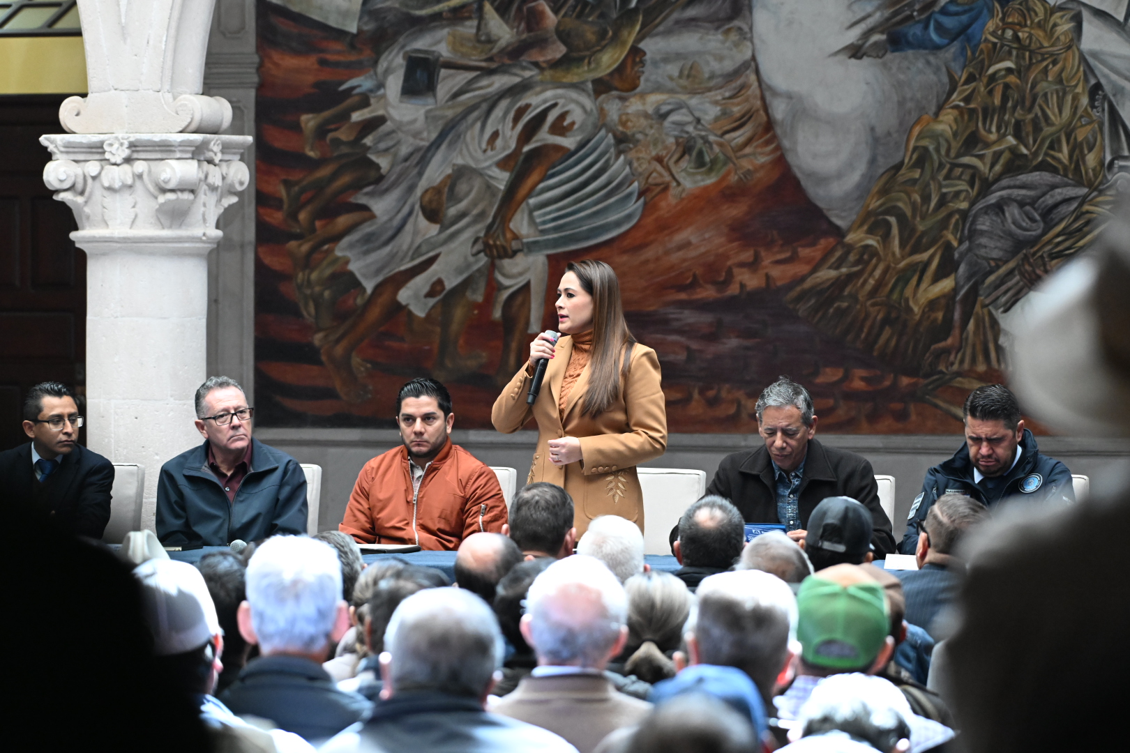 Durante el encuentro que se realizó en Palacio de Gobierno con la participación de representantes de la Secretaría de Agricultura y Desarrollo Rural (Sader), de la Comisión Federal de Electricidad (CFE), de la Comisión Nacional del Agua (Conagua), y de la Secretaría de Hacienda y Crédito Público (SHyCP), Tere Jiménez destacó la importancia del sector agropecuario no solo para la economía de Aguascalientes, sino del país en su conjunto: “Nuestro campo es lo que sostendrá el tratado comercial entre México, Estados Unidos y Canadá”, indicó.