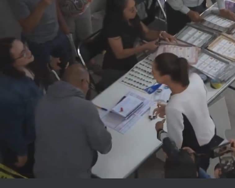 Elecciones2024 Despúes de un recorrido de treinta minutos, finalmente la Candidata Presidencial Claudia Sheinbaum, llegó a la casilla en donde emitio su voto, a su salida la candidata presidencial ofreció unas palabras a los medios y seguiguidores que se encontraban en el lugar y afirmó que su voto para la presidencia de la República fue para Efigenia Martínez, » los demás ya saben». expresó
