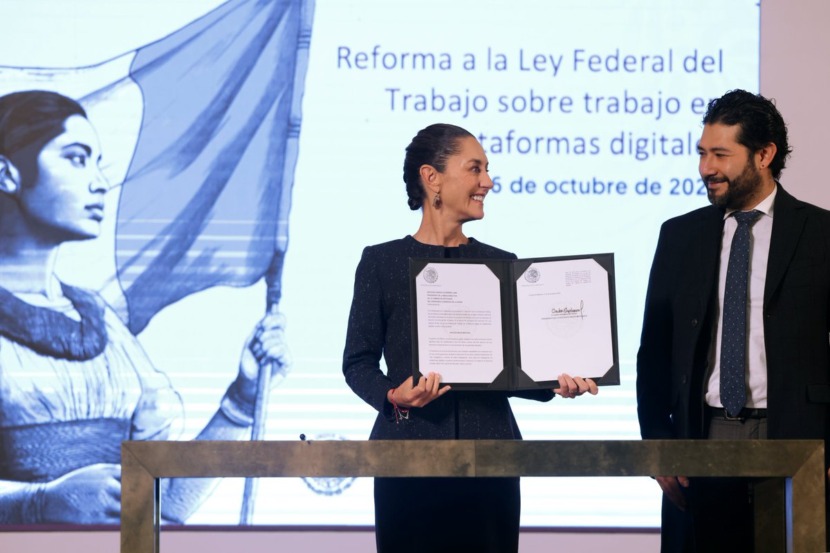 “Con esta reforma, Presidenta, estamos atendiendo el compromiso establecido por usted frente al pueblo de México, dando un paso sin precedentes en la protección de los derechos de las personas que trabajan en plataformas digitales.”