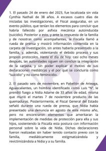 En su mensaje, Maríana Ávila, calificó como indignante que la Fiscalía de Aguascalientes se haya convertido en espectáculo mediático y se aleje por mucho de su responsabilidad de procurar justicia y buscar la verdad como es su obligación.