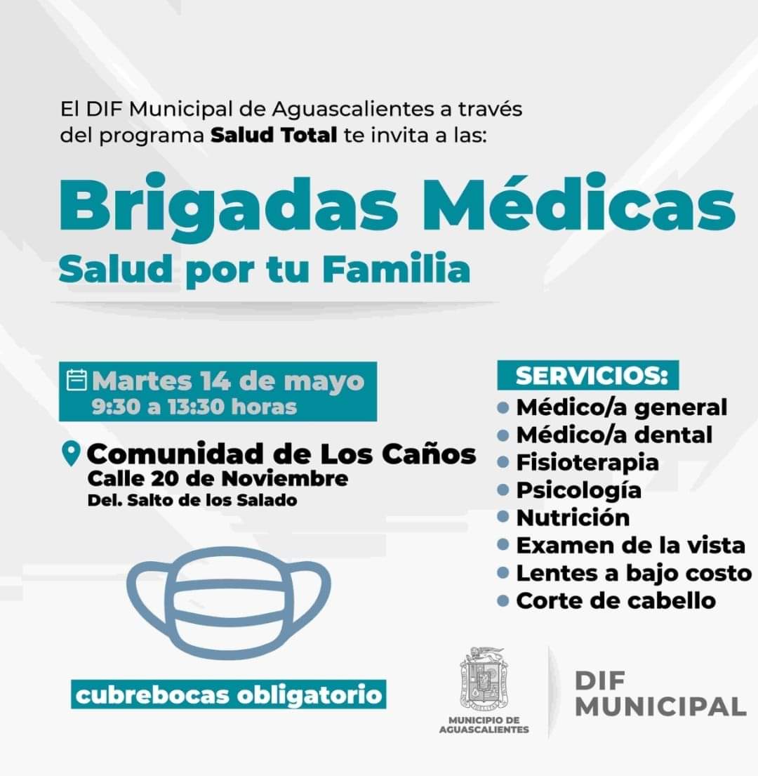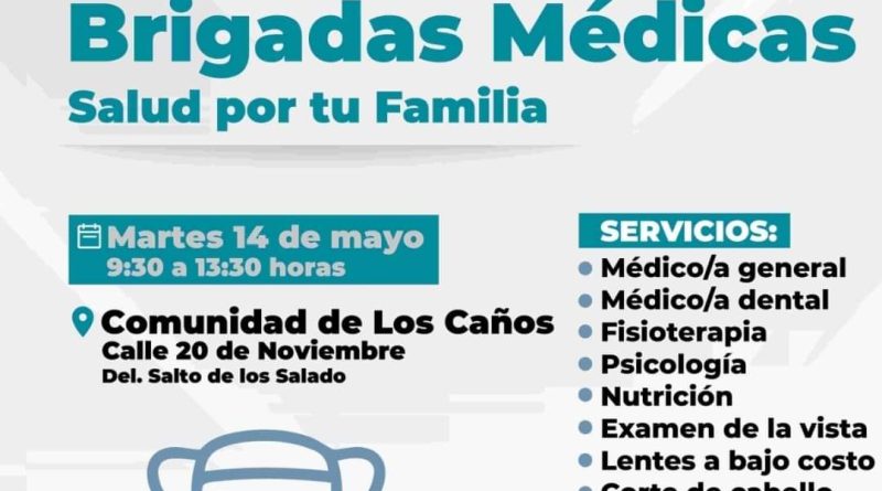 El martes 14 de mayo se llevará a cabo la brigada médica en la comunidad de Los Caños, en la calle 20 de Noviembre, delegación Salto de los Salado.