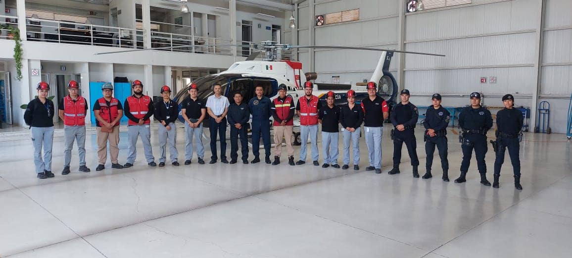 Como parte de las acciones que promueve la Secretaría de Seguridad Pública del Estado en coordinación con el sector empresarial, elementos de la Dirección General de Servicios Aéreos brindaron una capacitación a personal de la empresa COMPAS, en la que pudieron conocer los protocolos para el traslado aéreo de un paciente.
