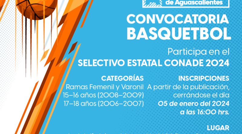 El Instituto del Deporte del Estado de Aguascalientes (IDEA) invita a las y los jóvenes atletas de nuestra entidad a participar en la convocatoria para los Preselectivos Estatales con el objetivo de conformar los equipos representativos en la disciplina de basquetbol rumbo a CONADE 2024.