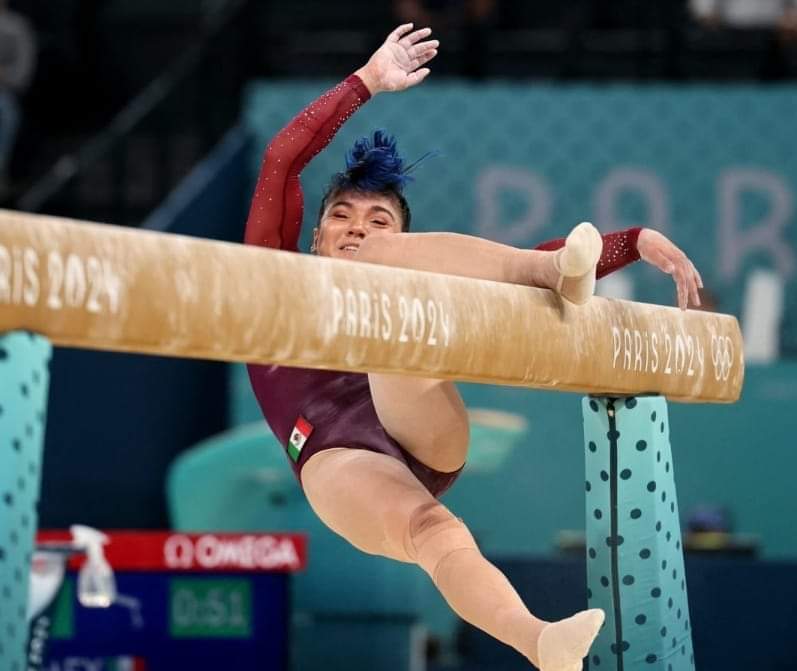 La gimnasta originaria del estado de Baja California cayó de fea forma en su actuación en la primera parte de su presentación en la barra de equilibrio, aparato en donde estaba teniendo una buena ejecución.