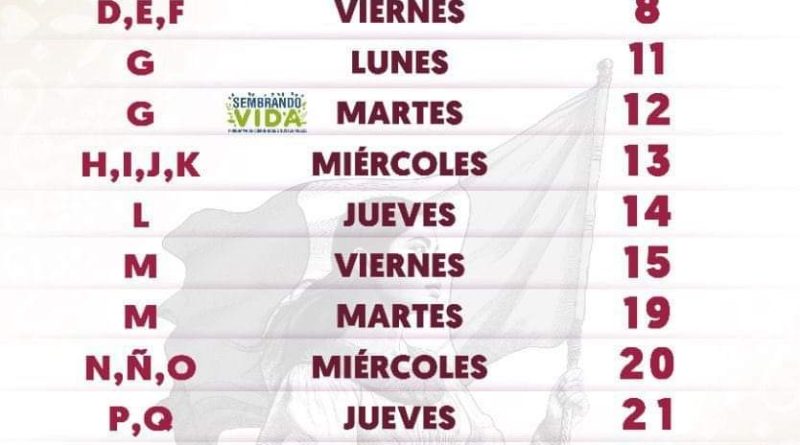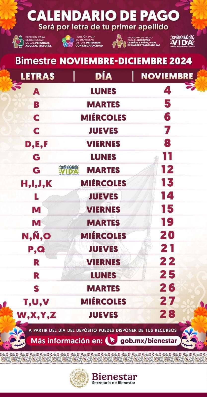 *El pago se realizará de acuerdo a la letra del primer apellido, de conformidad con el calendario de la Secretaría de Bienestar.