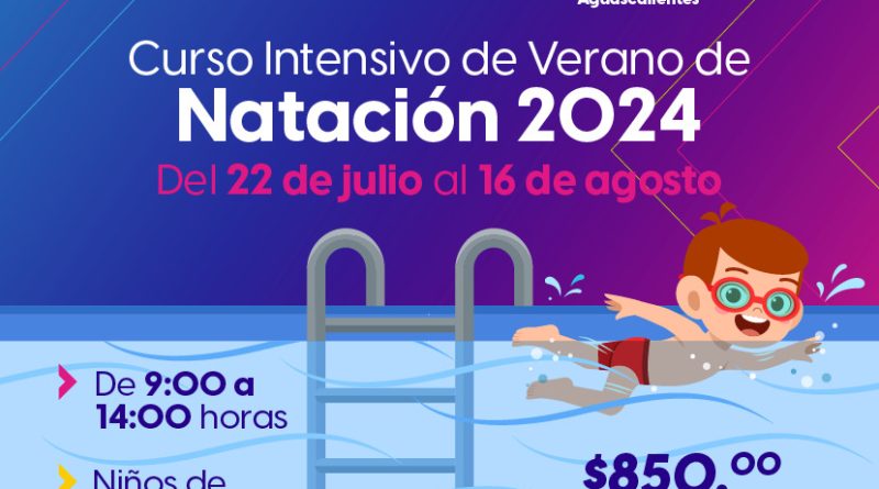 Si tienes entre cinco y 12 años podrás inscribirte al Curso Intensivo de Verano de Natación 2024 que se llevará a cabo del 22 de julio al 16 de agosto en un horario de 9:00 a 14:00 horas. El costo es de 850 pesos. Para mayores informes, las y los interesados deberán comunicarse al 449 970 17 66.