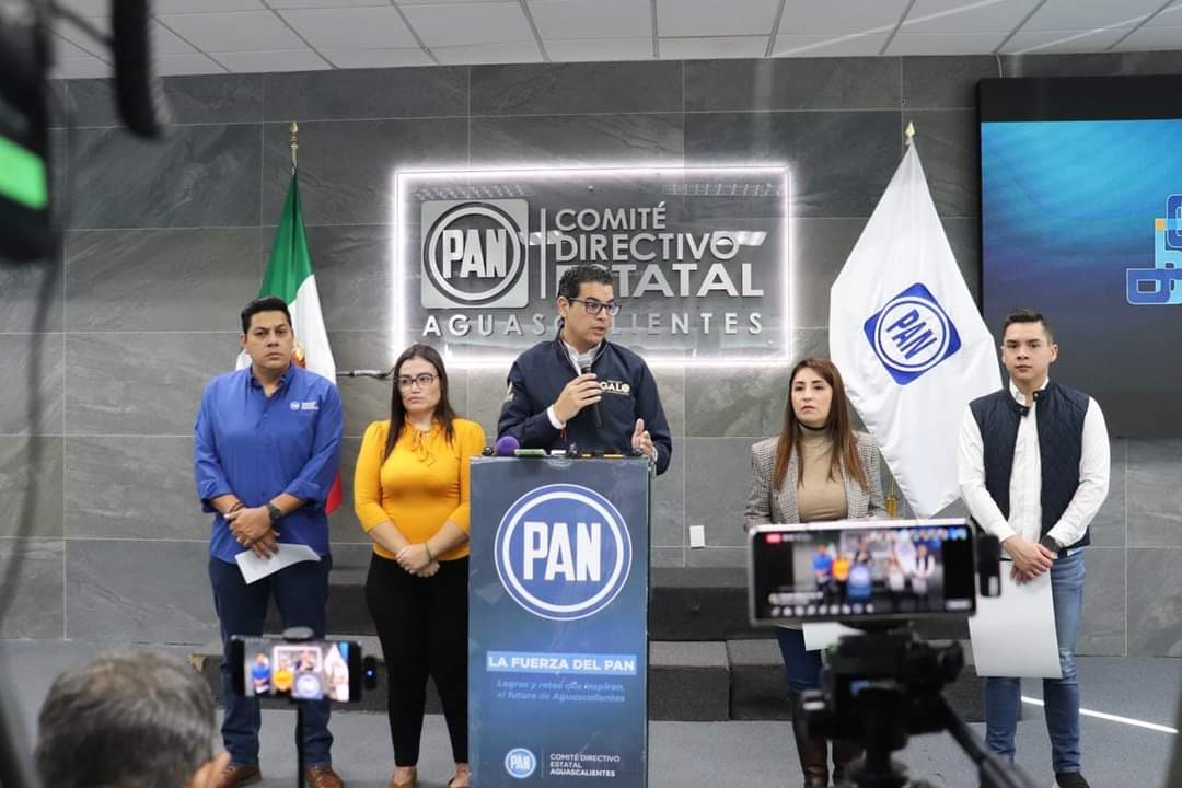 En rueda de prensa, el presidente del Comité Directivo Estatal del PAN en Aguascalientes, Javier Luévano Núñez, junto a legisladores y dirigentes del partido, presentó diversas iniciativas para enfrentar los retos económicos y sociales del estado y el país.