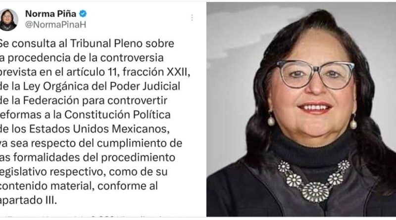 MINISTRA NORMA PIÑA ABRE NUEVA CONSULTA SOBRE LA PROCEDENCIA DE CONTROVERSIA CONTRA REFORMA JUDICIAL