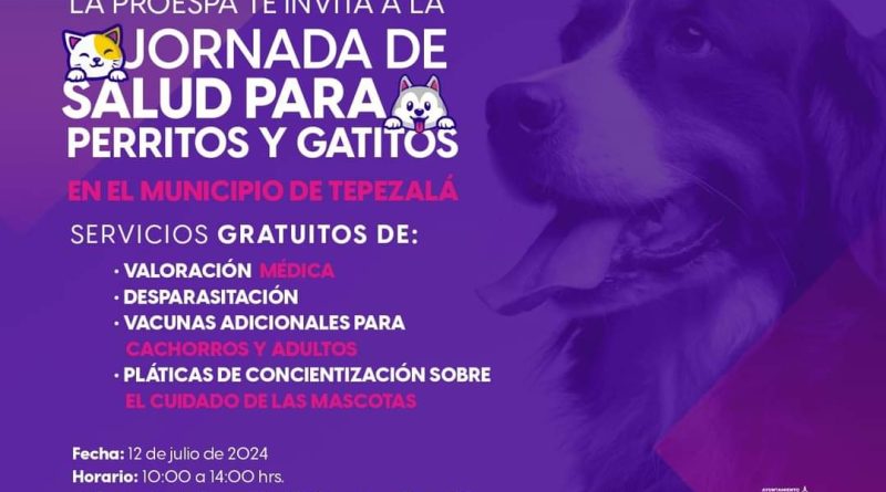 SERVICIOS VETERINARIOS GRATUITOS PARA PERRITOS Y GATITOS EN TEPEZALÁ ESTE 12 DE JULIO