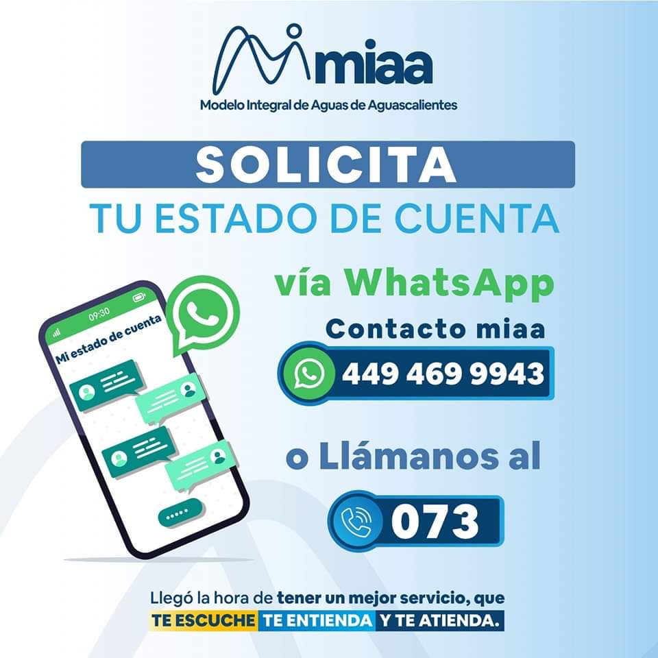 A través del número de WhatsApp 449 469 99 43 o marcando al 073, se puede solicitar el estado de cuenta, incluso de los meses anteriores y de esta forma, poder realizar el pago correspondiente.