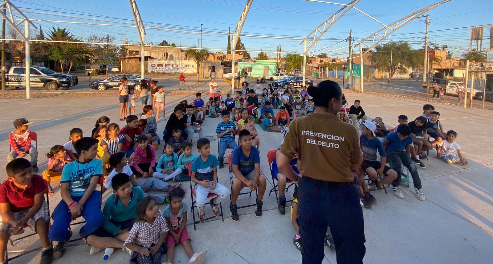 Elementos del Centro Estatal de Prevención y de Prevención del Delito del municipio de Pabellón de Arteaga se trasladaron al fraccionamiento Santa Isabel y se instalaron en las canchas, donde invitaron a toda la comunidad a recibir algunas pláticas para, posteriormente, disfrutar de una agradable proyección de cine de manera gratuita.