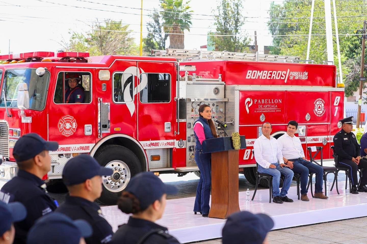 Posteriormente, Edgar Solís Cantú, coordinador de Protección Civil de Pabellón de Arteaga, dijo que con el nuevo camión de bomberos se beneficiará no solo a las y los pabellonenses, sino a la región norte del estado, brindando apoyo a los municipios cercanos.