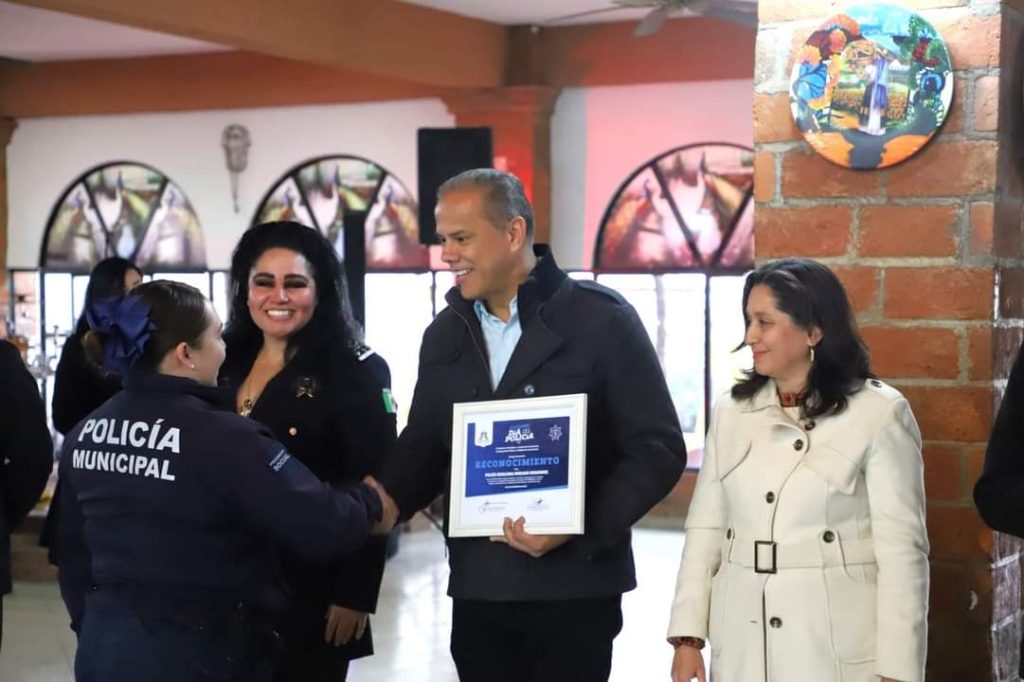 Durante el evento, hizo entrega de reconocimientos a policías con 5, 15 y 20 años de antigüedad e invitó a los presentes a continuar trabajando con espíritu de servicio y honestidad para que sus hijos, esposas y hermanos se sientan orgullosos del papel que desempeñan en beneficio de la sociedad.