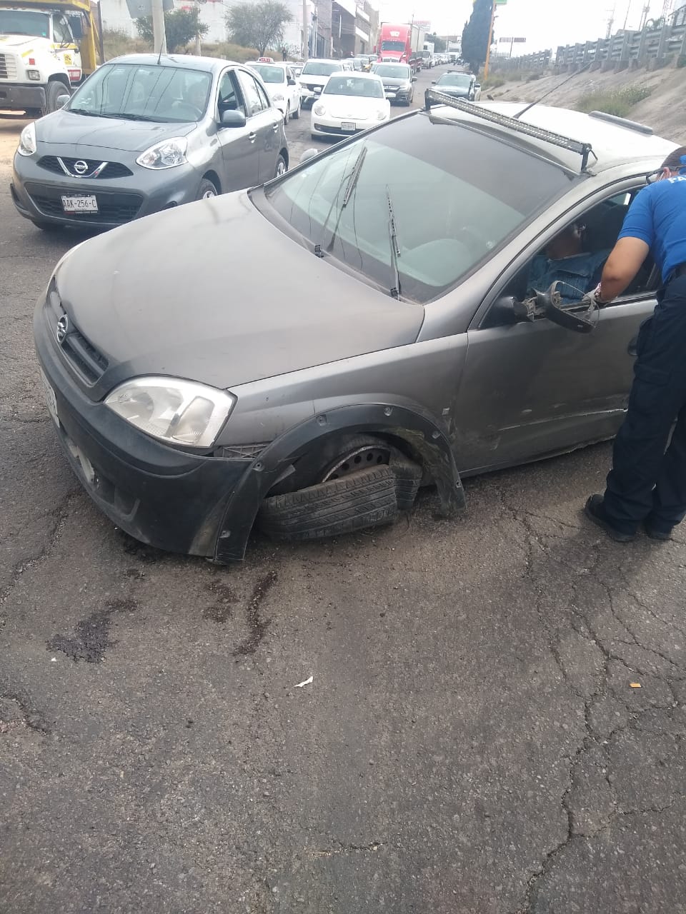 A su arribo al lugar, los policías detectaron que se encontraba atravesado a la vía de circulación un vehículo tipo pick up, marca Chevrolet, modelo 2010, en color gris, con placas de circulación del Estado de Aguascalientes, que era conducido por José Guadalupe N de 44 años de edad, mismo que fue valorado por paramédicos de la ambulancia UE-12 de la Coordinación Municipal de Protección Civil quiénes procedieron a brindarle los primeros auxilios, negándose a ser trasladado por los paramédicos, indicando que lo haría por sus medios luego del pase médico que le otorgó la aseguradora.