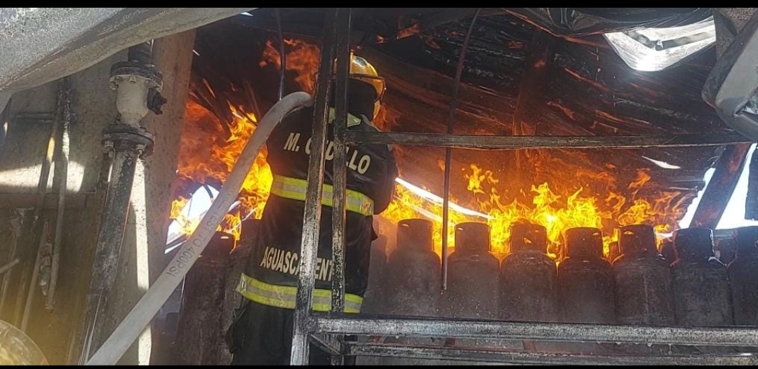 El H. Cuerpo de Bomberos del Municipio de Aguascalientes, colaboró con apoyo de las motobombas de ataque rápido, mientras que la Secretaría de Servicios Públicos aportó pipas de agua para apagar el fuego que se originó en un andén de cilindros de gas L.P.