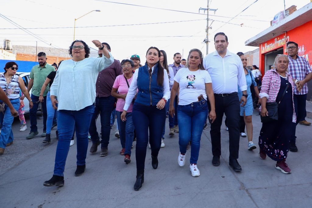 La gobernadora de Aguascalientes, Tere Jiménez, realizó una visita a los habitantes de la colonia Palomino Dena, donde encabezó un recorrido por las calles en compañía de funcionarios estatales y municipales para conocer las necesidades de la población.